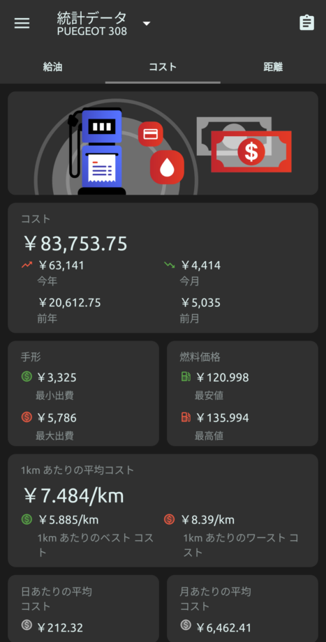 それに加えて高速代や洗車代(自分で洗ってます)が入ってきますが、計算するのが億劫でしてません笑