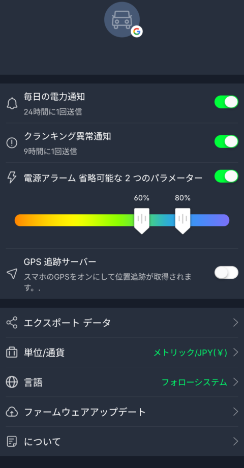 走行記録は使わないのでオフにしています