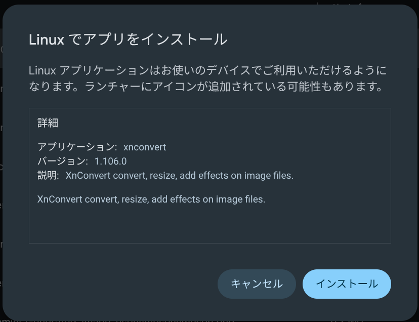 では、早速ChromebookへXnConvertをインストールしましょう!