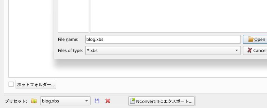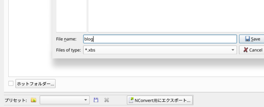 指定した名前に拡張子.xbsがつきます。