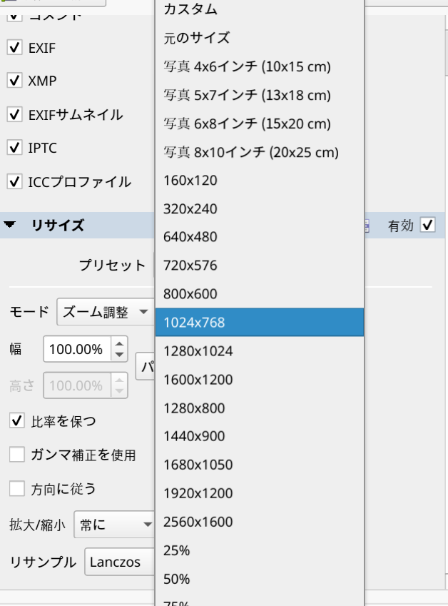 リサイズはプリセットから選択することもできますし、