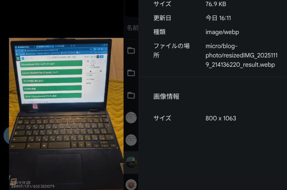 ブログ作成の参考、Chromebookでの画像管理の参考になれば嬉しいです。